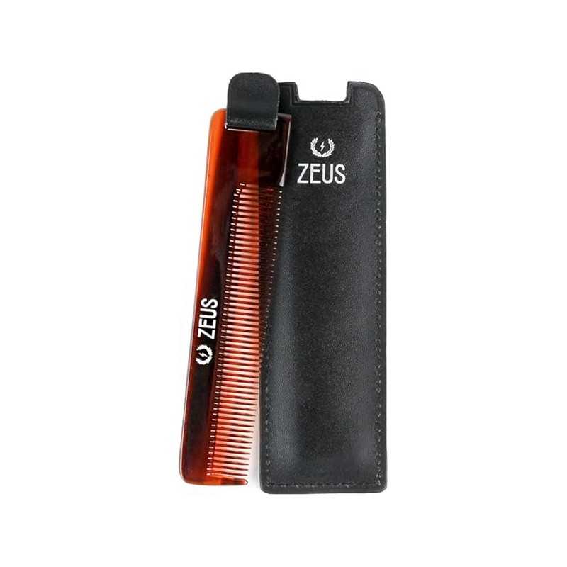 ZEUS Pocket Beard Comb with Leather Sheath, Handmade Saw-Cut Pocket Beard & Mustache Comb with Travel Storing Case (U11)