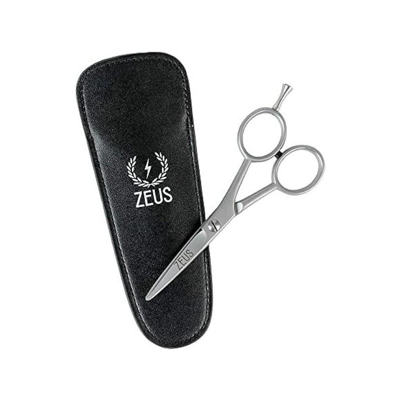 ZEUS Stainless Steel Beard Trimming Scissors with Leather Case, Facial Hair Clipping Tool for Barber Quality Beard & Mustache Trim (Made In Germany)