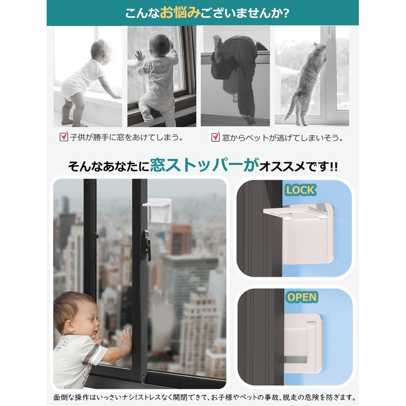 • This window stopper is easy and safe to use just double-sided tape. Can be used to prevent children and pets from falling out