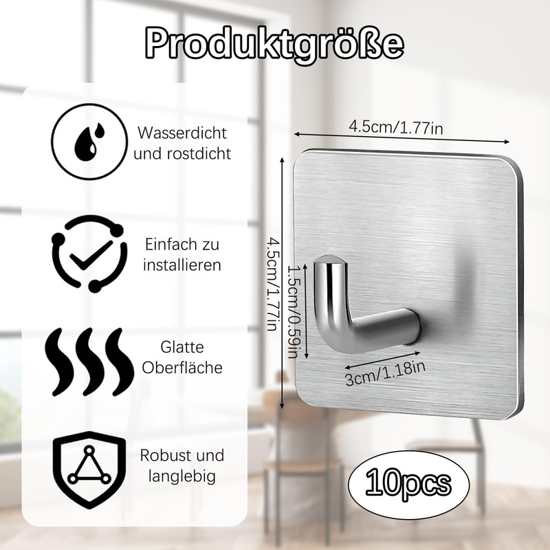 - Vielseitige Anwendung: Praktische Klebehaken für verschiedene Oberflächen wie Fliesen, Glas und Holz; Ideal zur Organisation von Handtüchern, Kleidung oder Küchenutensilien in kleinen Wohnungen