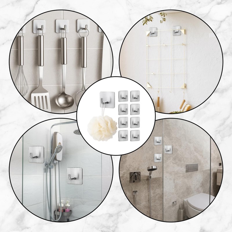 ZexJpr 10 Stück Klebehaken, Klebehaken Extra Stark, Selbstklebende Haken Ohne Bohren,4.5 x 4.5cm Edelstahl Haken Zum Kleben, Für Badezimmer Und Küche