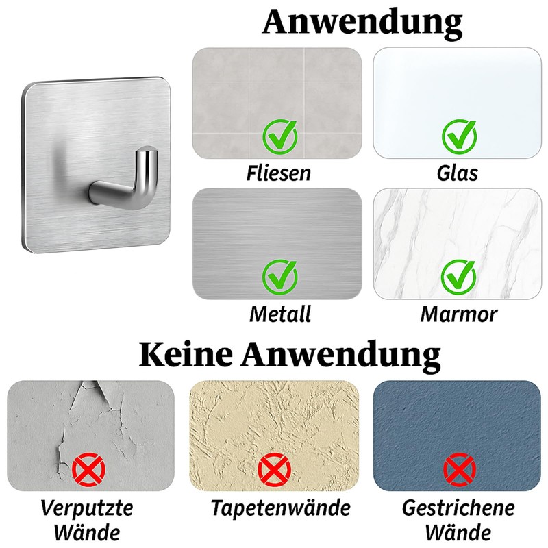 - Starke Haftkraft: Diese selbstklebenden Haken bieten eine extra starke Haftung für sicheren Halt; Ideal für Handtücher, Bademäntel und Küchenutensilien; Kein Bohren erforderlich, schonend für Ihre Wände