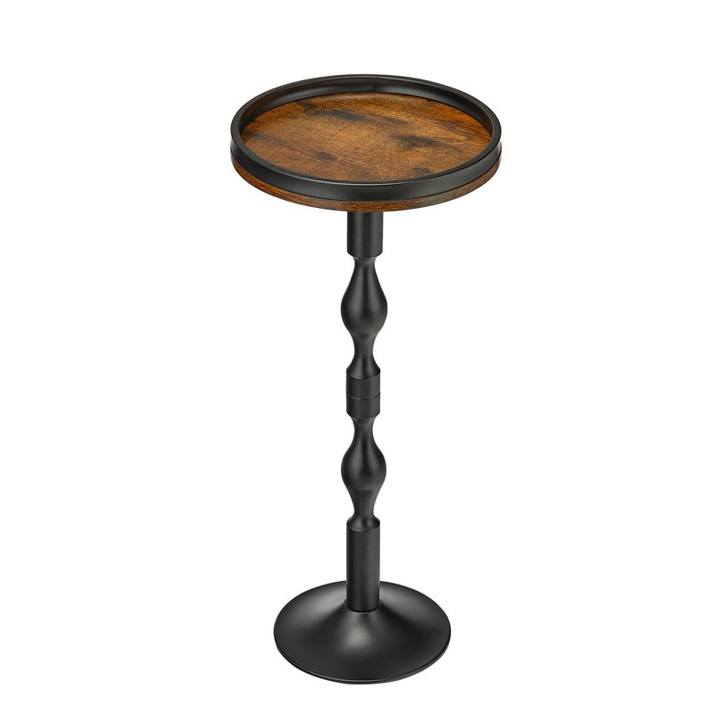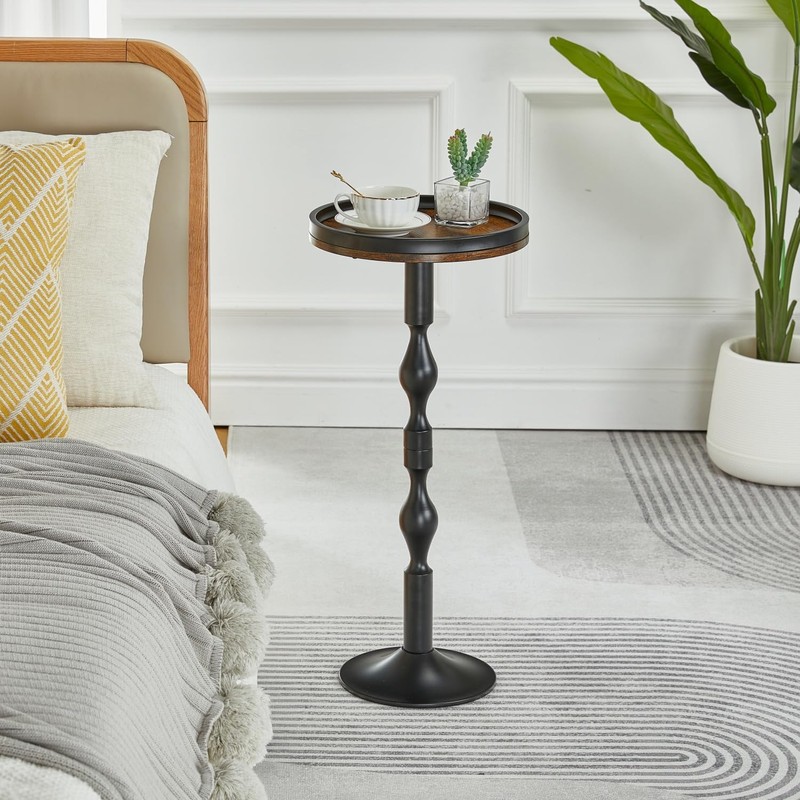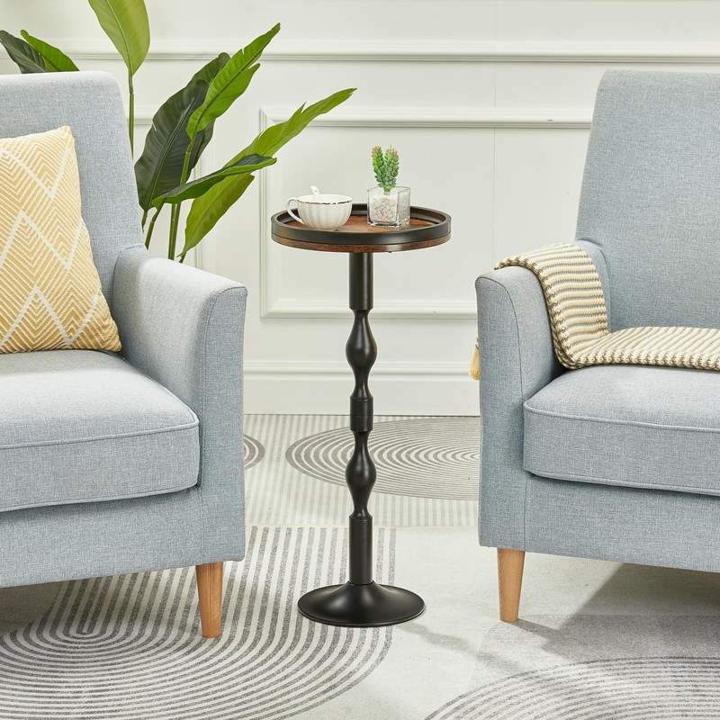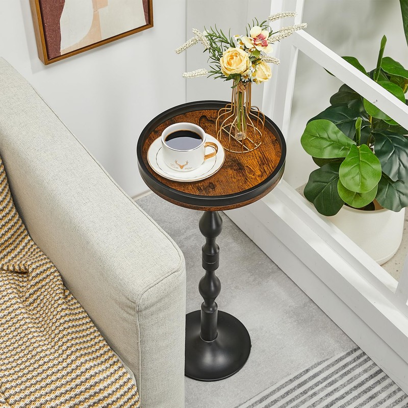 ZEXVIDA Small Round Drink Table,Pedestal Tables,Small Round Side Table for Narrow Spaces,End Table for Living Room, Bedroom, Bathroom,Balcony (Rustic Brown)