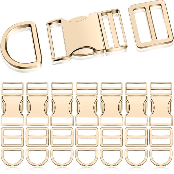 Zeyune 32 Pack Metal Buckles for Straps Dog Collar, 8 Pcs Side Release Buckle 8 Pcs D Rings 16 Pcs Tri Glide Slides Buckles(Gold)