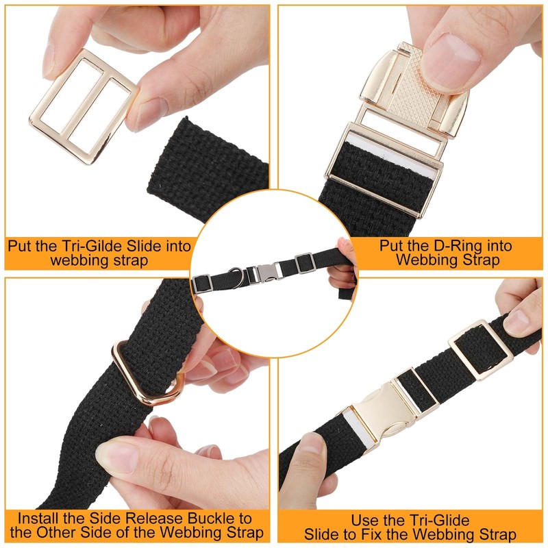 - No Sewing and Dual Adjustable: these metal buckles feature dual adjustable design and no sewing is needed, so you can install a buckle on each side of your strap or webbing, and adjust the length according to your actual need