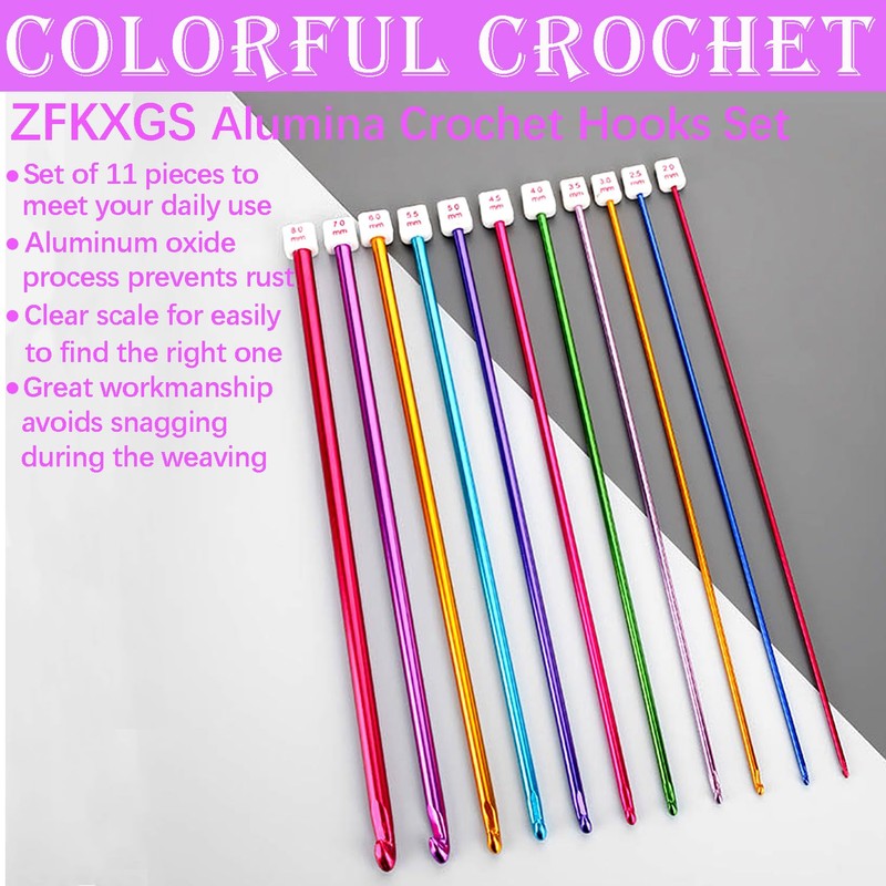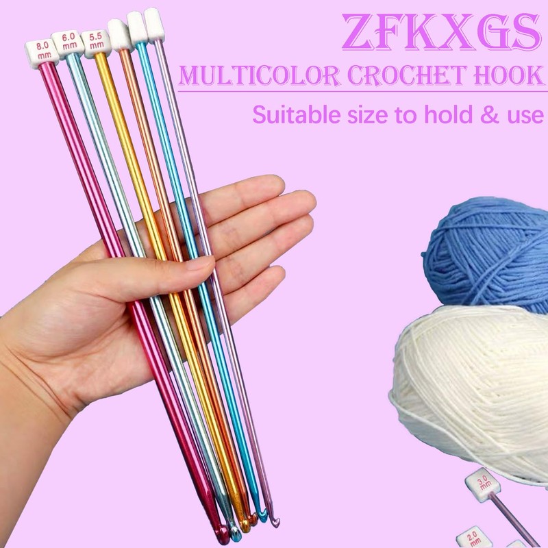 - Multiple sizes: ZFKXGS Tunisian crochet hooks set are about 27 cm long, so that the yarn has enough space for good gliding. And there are 11 sizes to choose from: 2.0mm, 2.5mm, 3.0mm, 3.5mm, 4.0mm, 4.5mm, 5.0mm, 5.5mm, 6.0mm, 7.0mm, 8.0mm