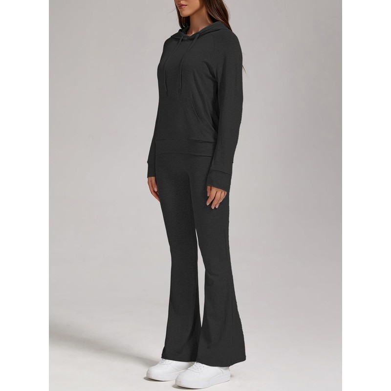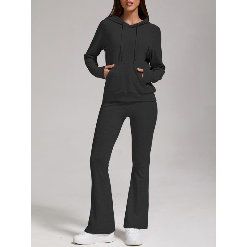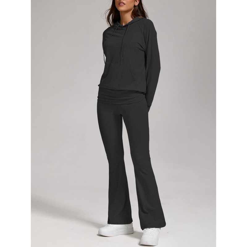 ZFLM Women's 2 Piece Sportswear Set Casual Sweatsuit Long Sleeved Drawstring Foldover Flared Sweatpants Tracksuit Streetwear