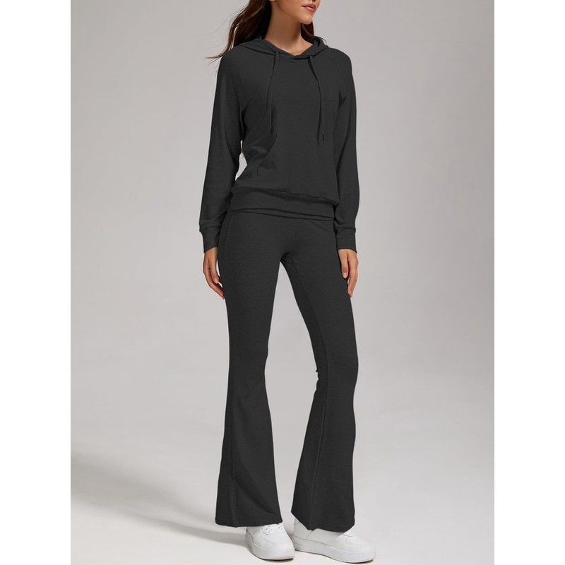 - Pants’ Design:These soft, smooth, and stretchy pants feature throwback-inspired flare with a fold-over waistband which can be adjusted to be low-rise or mid-rise to create a ruched look. This comfy 2 piece outfit is both stylish and comfortable.