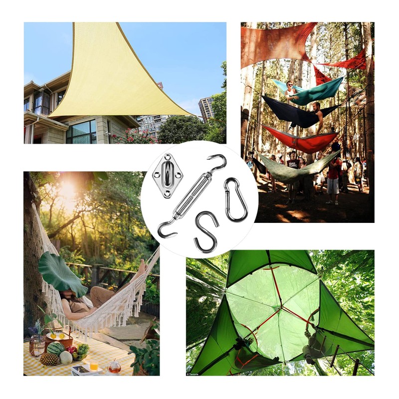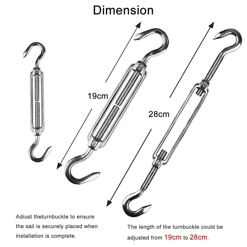 - 【Awning Tightener】Adjustable tightener can tighten or extend the shade sail. It allows the sailcloth to be adjusted to the length of the installation according to the actual situation. Ensures stable shade even in windy and sunny conditions.