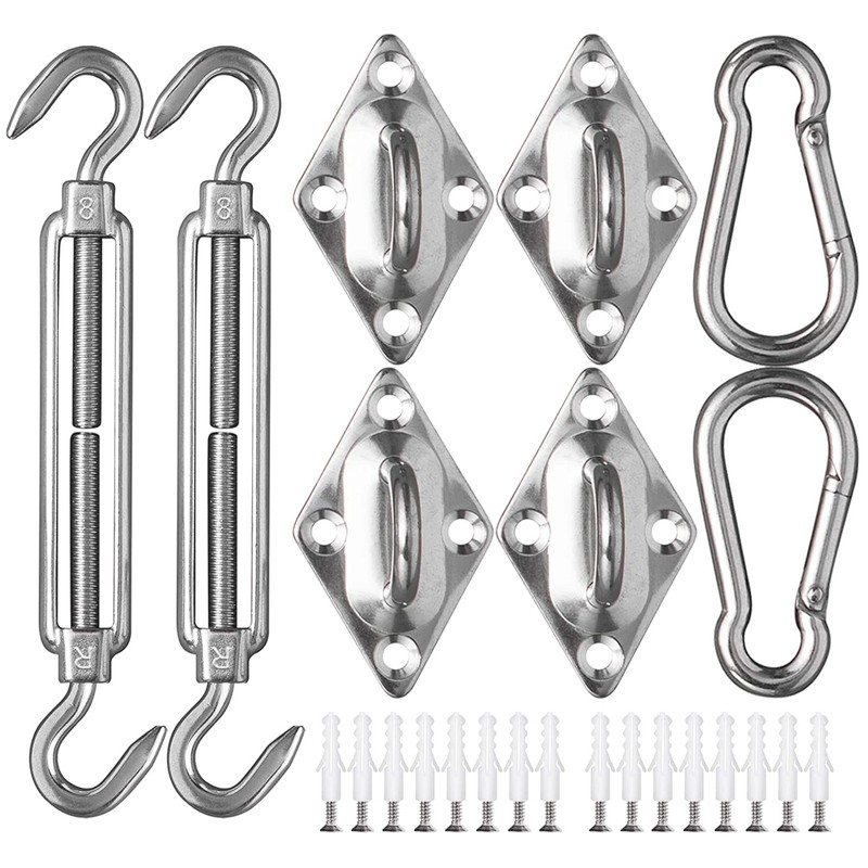 - 【UNIVERSAL】The M8 Heavy Duty Sun Shade Sail Hardware Kit fits most types of sun shade sail, such as triangle, rectangle and square. Fixed fittings for sunshades for gardens, patios, pools, pergolas, terraces, etc.