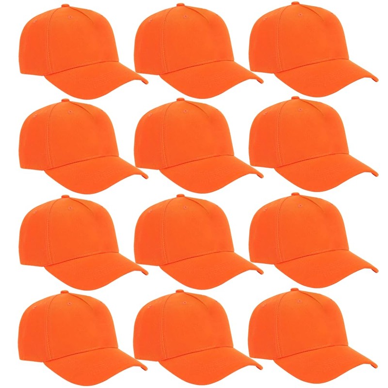 ZH 12 PC 5 Panel Baseball caps, Bulk Baseball caps, Customizable DIY Design, Wholesale Caps, One-Size-Fits-All Orange