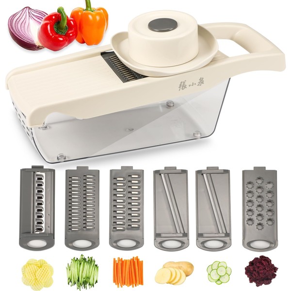 ZHANG XIAO QUAN SINCE 1628 6-in-1 Safe Mandoline Slicer for Kitchen, Cheese Grater Vegetable Spiralizer and Veggie Slicer for Cooking & Meal Prep Food Chopper