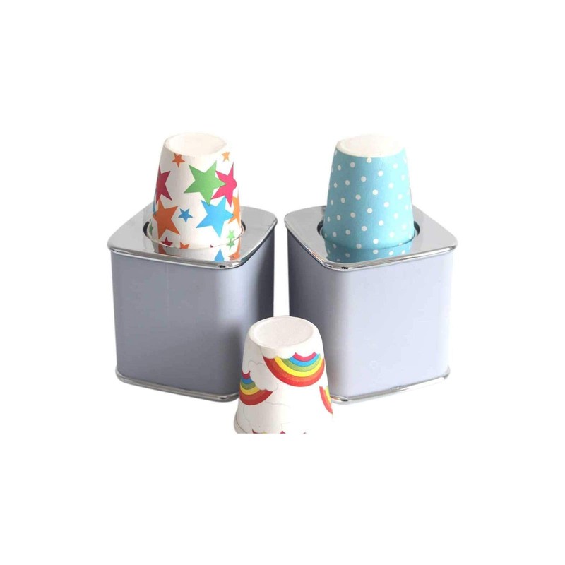 Description: It can hold 20-30 paper cups or transparent cups at a time. The product material is ABS, mirror plating process. Easy to pick up and durable. It is an indispensable accessory for homes, public places, and hotel bathrooms. Applicable cup mouth size is 57mm and 66mm. Specification: Material: ABS+metal+paper cup Cup dispenser color: light purple Type(cup color): A, B, C Size(approx): cup dispenser: 9*8*6.7cm Package: 1 pc x paper cup dispenser 20 pcs x paper cup Note: 1\. Due to the light and screen difference, the item's color may be slightly different from the pictures. 2\. Please allow 1-2 cm differences due to manual measurement.