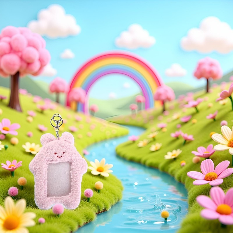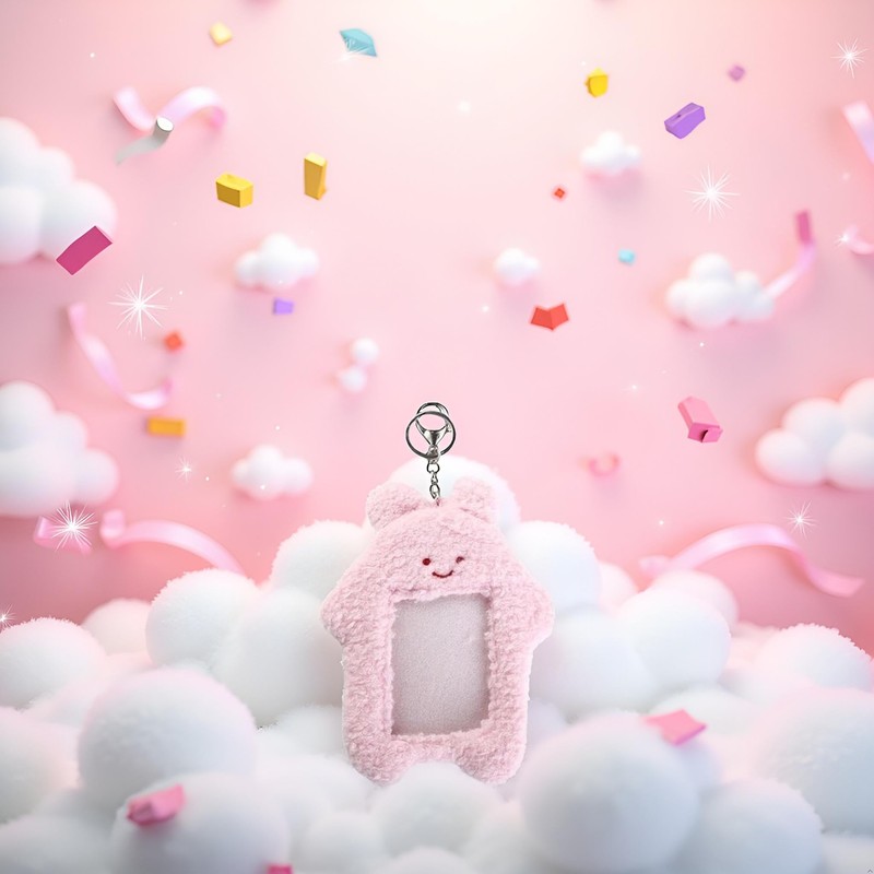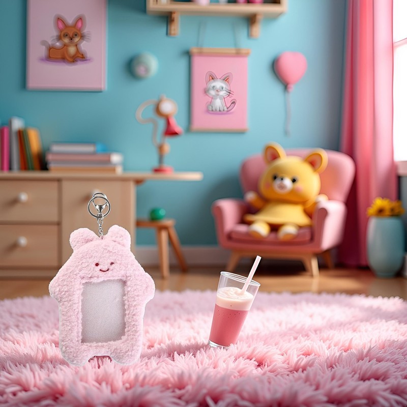 ZhangyiHot Pink Cute Plush Photocard Holder with Keychain, Cartoon Bear Rabbit Cat Photo Sleeve Cartoon Plush Photo Sleeve Protective Case Albums, Cute photocard holder Frames and Accessories(ZS625)