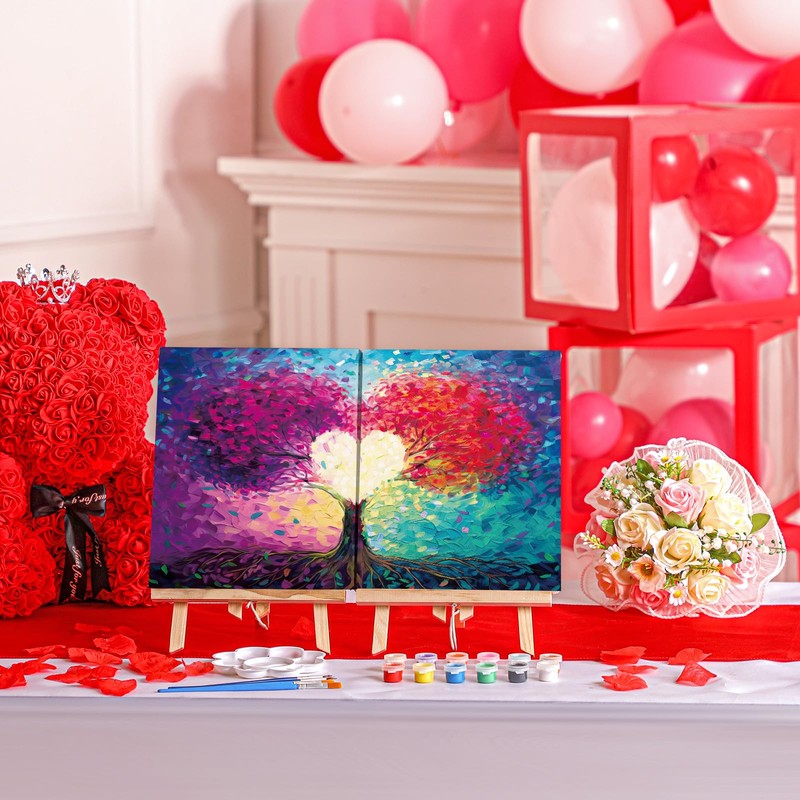 Zhanmai 112 Pcs Sip and Paint Kit for Adults Date Night Pre Drawn Canvas Paint Kit for Couples Canvas Painting Art Pre Drawn Stretch Art for Couple Valentine Party(Tree of Love,8 x 10 Inch)
