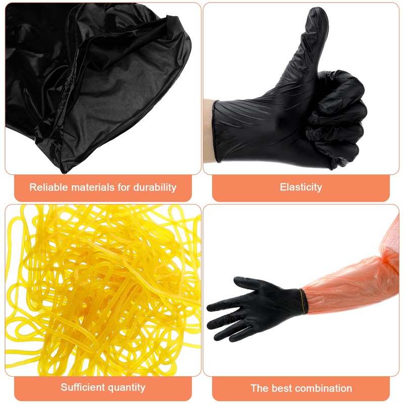 - Quality Material Selection: these gutting gloves are well made, the long gloves are made of thick PE material, and the short ones are crafted with quality nitrile, sturdy and solid, soft and resilient, strong enough against breakage and fraying