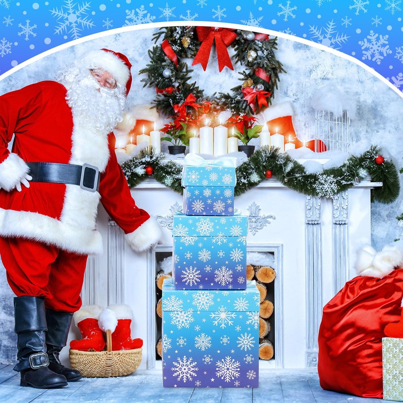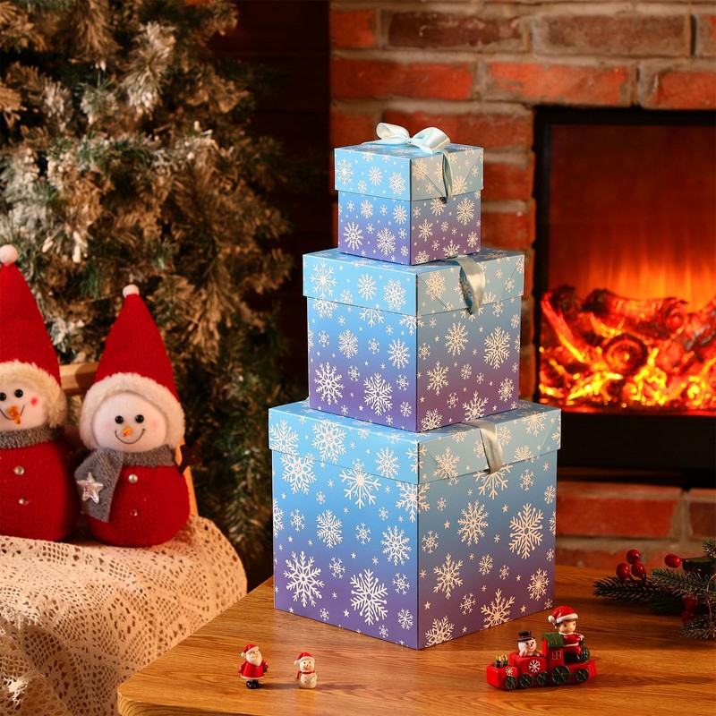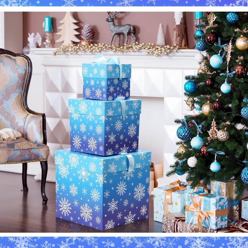 Zhanmai 3 Pcs Christmas Nesting Gift Boxes Snowflake Stackable Boxes Christmas Decorative Boxes with Lids for Present Wrapping Xmas Winter New Year Holiday Party Decor Supplies Favor(Blue)