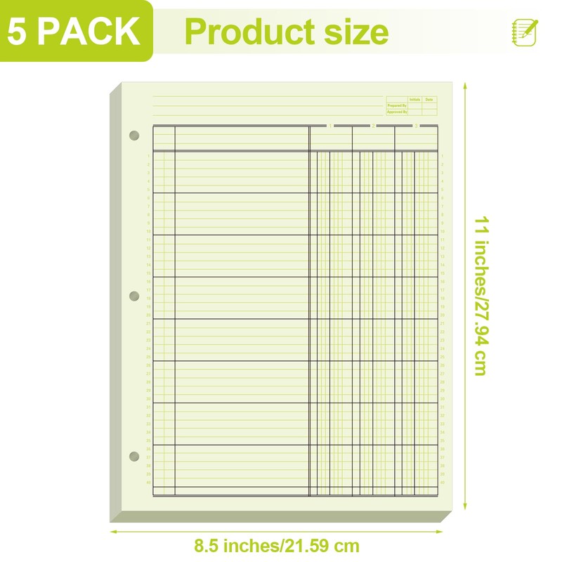 • 3 Holes Design: the 3 hole design of our ledger notebook enables efficient integration into your binders and folders; Each pack offers 50 hole punch sheets, promoting innate versatility; This ingenious feature transforms your organizational experience, providing you with the ease to maneuver and arrange your sheets effectively