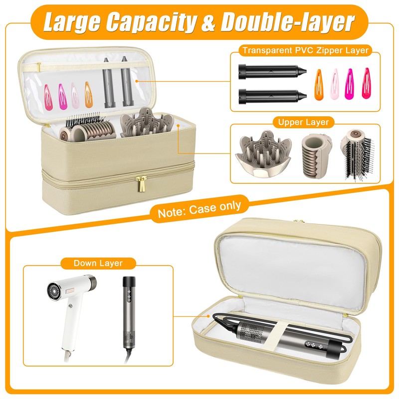 Zhaoyao Case for Shark Flex Style, Travel Case for Airwrap,Beauty Tool Storage Box, Suitable for Multi-accessory Arrangement of Shaper, Hair Curler, Hair dryer (Beige)
