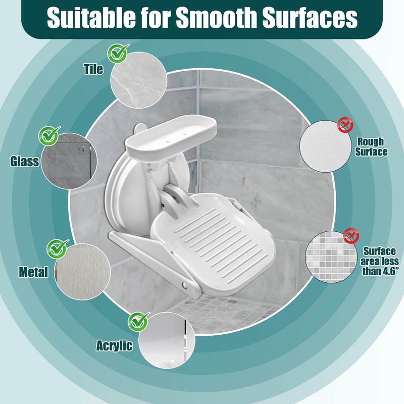 - 【Easy Installation and Cleaning】This shower foot rest can be quickly installed or removed without tools. The suction cup is washable to maintain cleanliness and suction power. It is suitable for smooth, non-porous surfaces such as tiles, glass, acrylic, etc. Please note that this suction cup is not suitable for installation on fuzzy or rough surfaces, and ensure the wall is dry and clean before installation.
