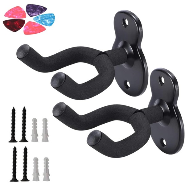 ZHAOYCSH 2er-Pack Gitarrenwandhalterung aus robustem Material - Wandhalter für Akustikgitarre, E-Gitarre, Bass & Ukulele (Tiefschwarz) - Universelle Wandhalterung mit weichem Polster, U-förmig