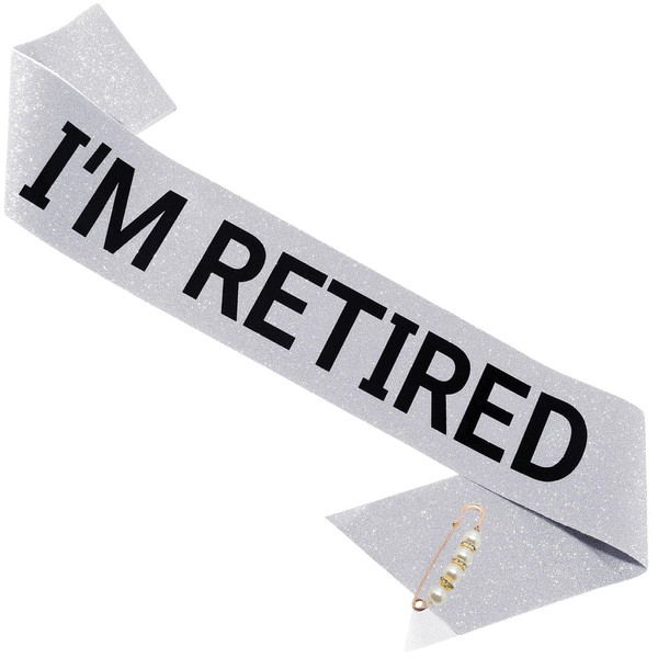 ZHBDPaty Officially Retired Elegance Sash - Retirement Sash for Both Women and Men with Pearl Safety Pin. Perfect for Retirement Parties, Events, and Thoughtful Novelty Gifts (3 Silver, Large)