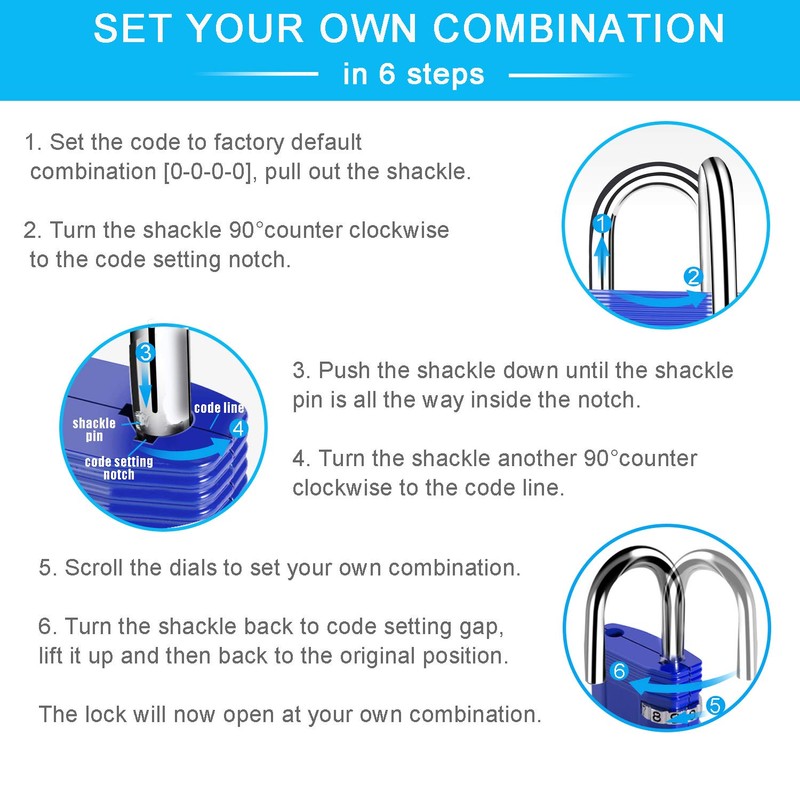 - ▶Easy to Use: It is very easy to set and reset your own combination following the instructions which are always included. Numbers are easy to read and maneuver, making it seconds to lock and unlock the keyless combination lock in daily use.