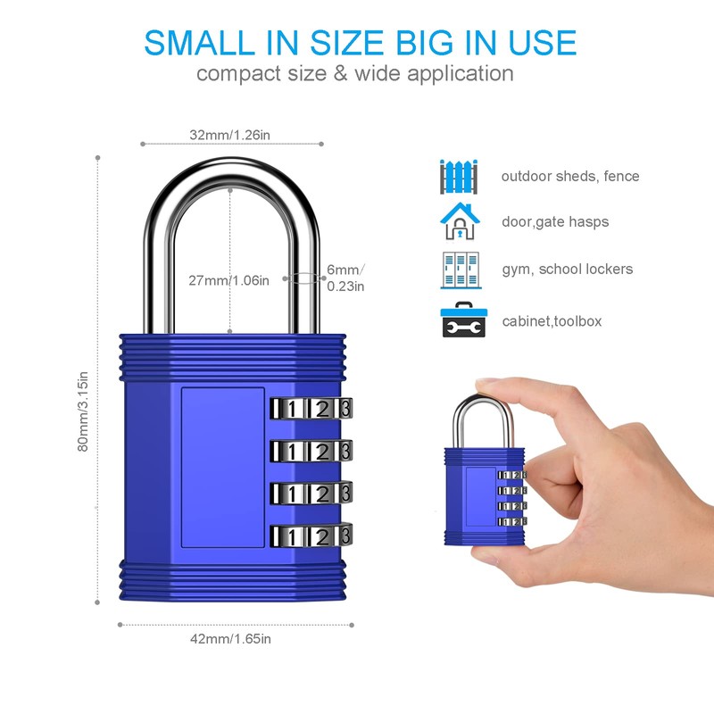 · With small and compact size, ZHEGE 4-digit outdoor lock is also perfect for indoor use like gym, school and employee lockers, all kinds of toolboxes, cases, cabinets, pantries, etc.