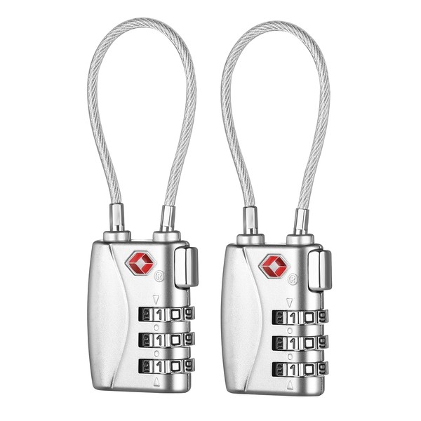 ZHEGE Combination Lock Suitcase, 3 Digit Suitcase Locks, Cable Lock, Travel Lock, Small Lock Locker for Luggage, Backpack and Locker (Silver, 2 Pieces)