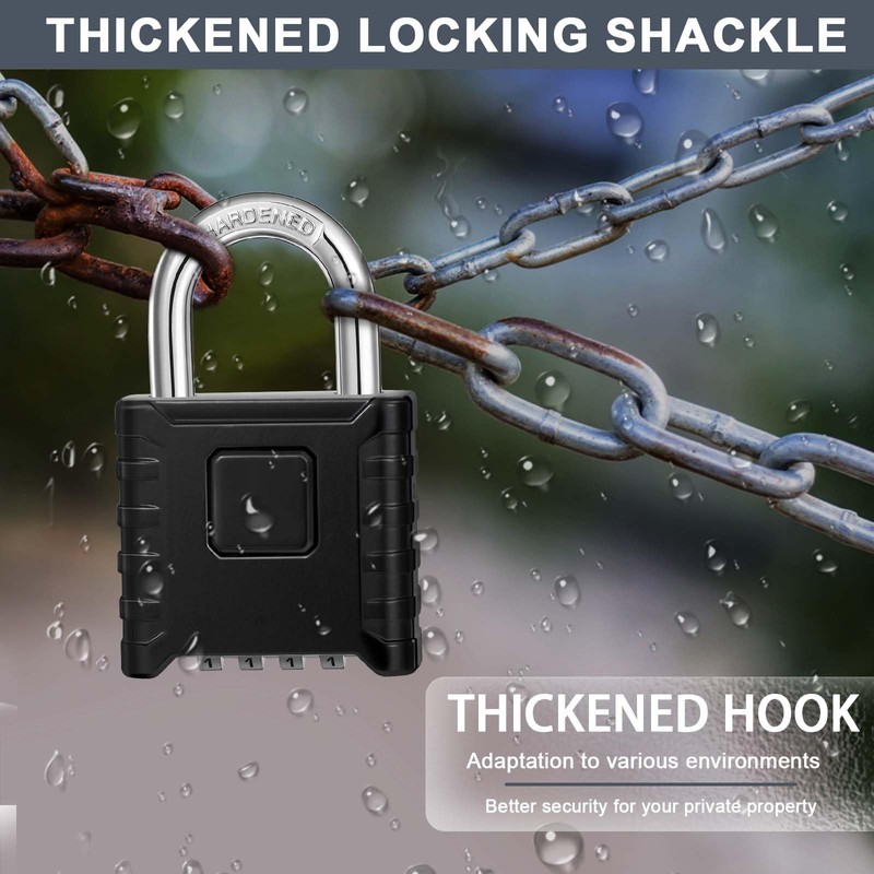 • WIDE APPLICATION:This combination padlock is perfect for indoor and outdoor use, such as storage rooms, gates, garages, sheds, fences, cellars and toolboxes. NOTE: Before purchasing, please check the shackle diameter (8mm) of the combination lock outdoor to make sure it is suitable for your intended use.