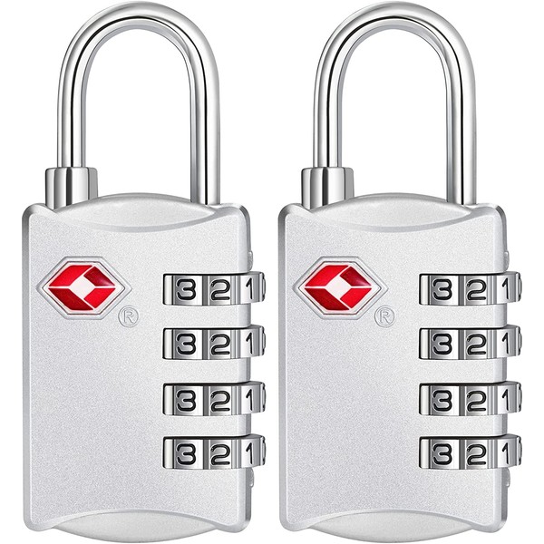 ZHEGE Luggage Locks, TSA Approved Travel Lock, 4 Digit Suitcase Lock for Luggage, TSA Lock for Baggage, Zipper of Backpacks (Silver, 2Pack)