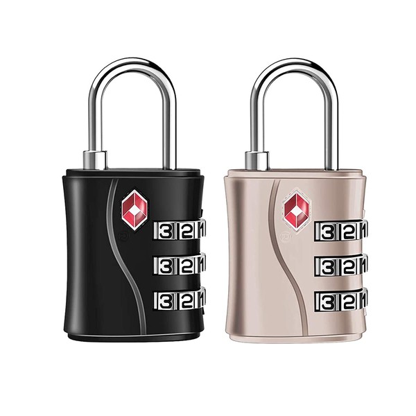 ZHEGE TSA Padlock, 3 Digit Suitcase Lock, PIN Code, Overseas Travel Key, Gym Locker Luggage Bag Lock, Japanese Instruction Manual (Black, Gold)
