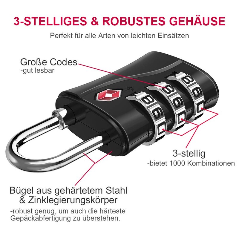 - Easy to use: the resettable 3-digit TSA suitcase lock allows you to set your own number code with 1000 unique options. Simple 5 steps and instructions are always included.