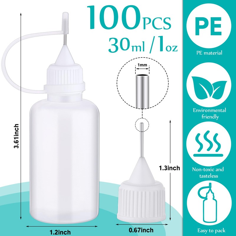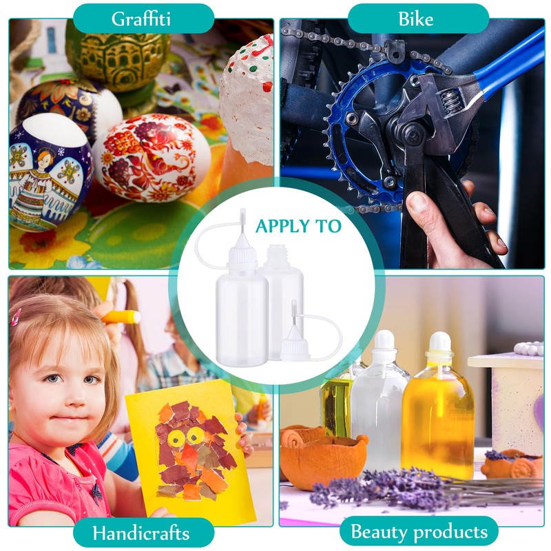 - Suitable Size: the glue bottles with fine tip are about 3.61 inches long and can hold 30 ml/ 1 oz of liquid, small and easy to control; The 1 mm wide needle tip design can easily control the dose, work precisely, and nicely meet the needs of painting