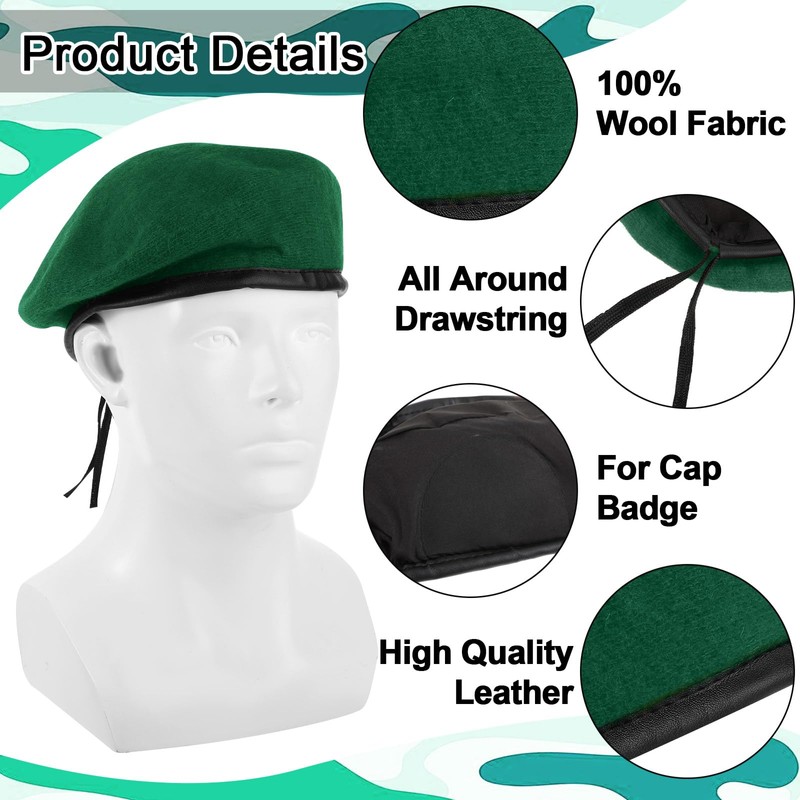 Zhehao 2 Pcs Military Beret for Men Beret Hat Adjustable Wool Army Berets with Leather Trim Beret for Men Women(Dark Green, Black)