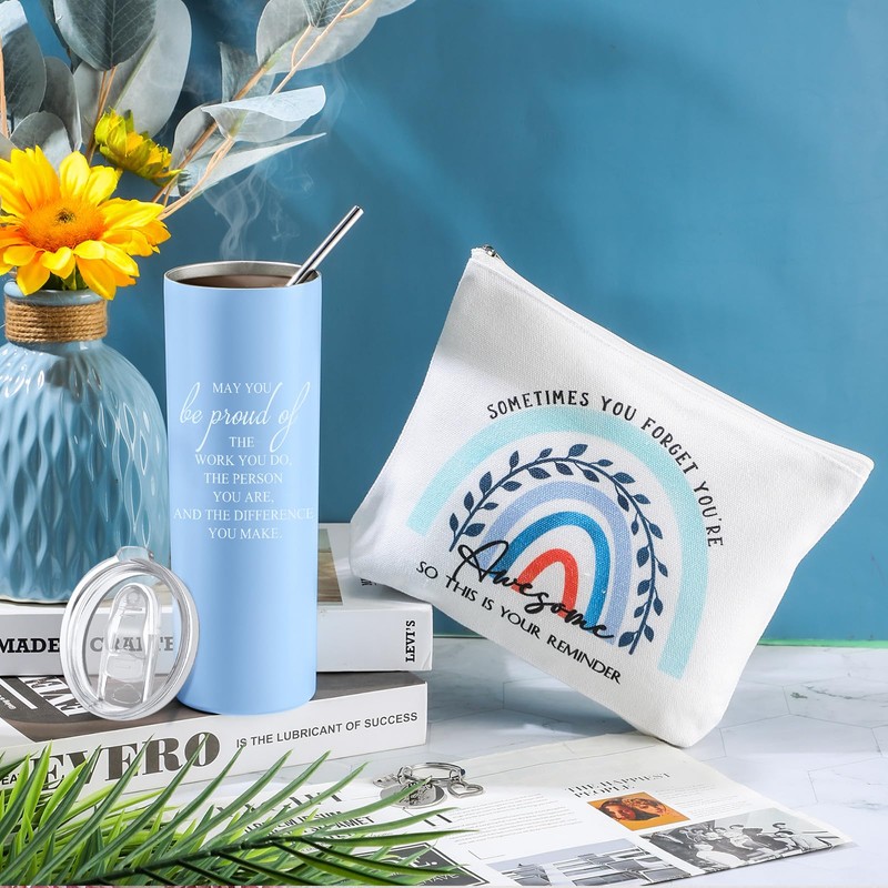 Zhehao Employee Appreciation Gifts Set May You Be Proud Tumbler Cup with Keychain Makeup Bag Thank You Gift for Teacher Nurse Coworker Lady(Rainbow)