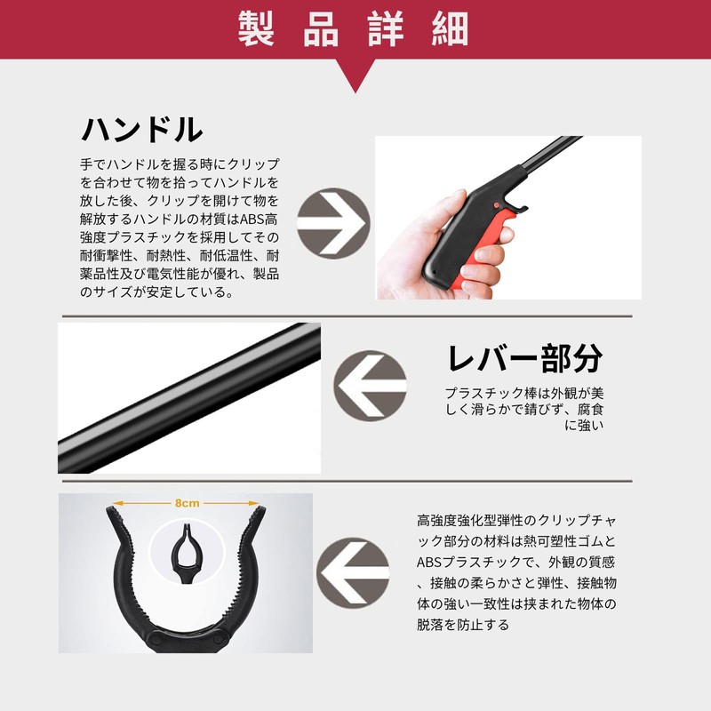 (Keeps Hands Clean) The grip shape fits the hands so it is easy to handle even those with weak grip strength. This garbage pickup tool can keep your hands clean from the garbage Your hands will be touched with rough things. It can be used for a variety of purposes, such as holding parking tickets or picking up garbage.