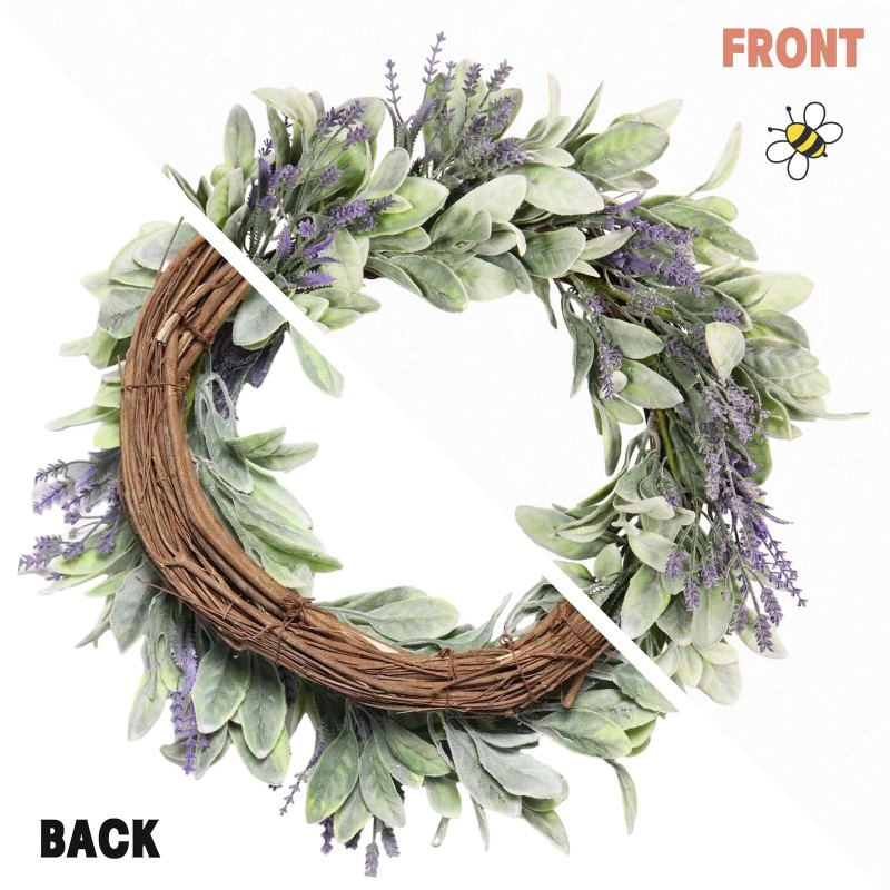 [Unique Design] Zhemobang summer wreath is composed of lambs ear and lavender to make the whole wreath elegant and layered. A variety of plant species make the wreath more vivid and has a strong summer atmosphere, and even bees will mistakenly think they have entered the flowers and collect nectar on your front door. With our wreaths, summer will arrive first at your front door