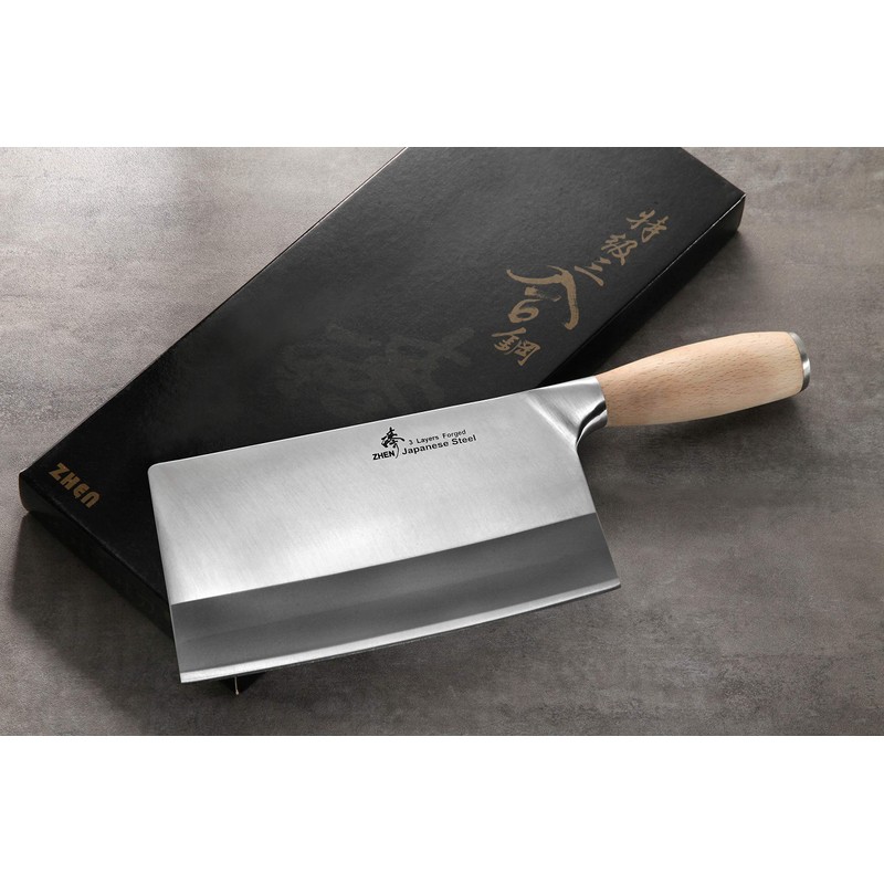 ZHEN Japanese VG-10 3-Layer Forged Chinese Cleaver, 8 inches, Silver