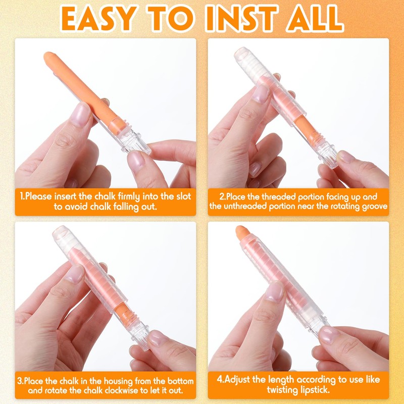 - 【User - Friendly Twistable Holder】: Say goodbye to broken chalk! Our dustless chalk comes with an adjustable, lipstick - style rotating holder. This design not only prevents kids from accidentally breaking the chalk but also makes it incredibly easy to hold. With an overall length of 3.9 inches, it fits comfortably in both small hands and adult grips, ensuring a smooth and enjoyable drawing experience. Note: Dustless chalk should be wiped with a magnetic board eraser. To clean the chalkboard, wet a damp cloth and wipe the surface of the board, then dry it with a dry cloth.