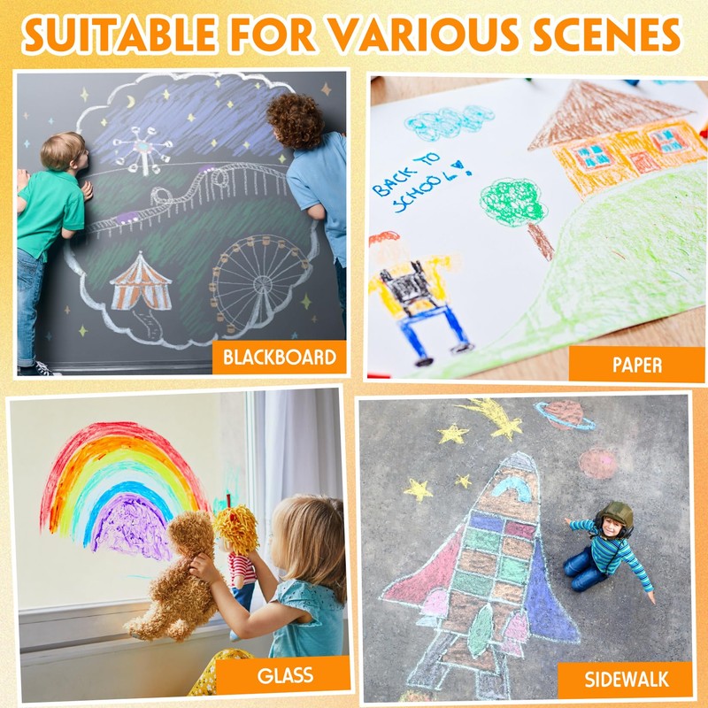 - 【Versatile Applications】: This dust - free chalk set isn't just for kids. It's a hit among students, teachers, teens, and professional artists alike. Write, draw, or doodle on a wide range of surfaces, both indoors and outdoors. From sidewalks and floors to canvases, chalkboards, windows, walls, cardboard, paper, and wood, the possibilities for creativity are endless.
