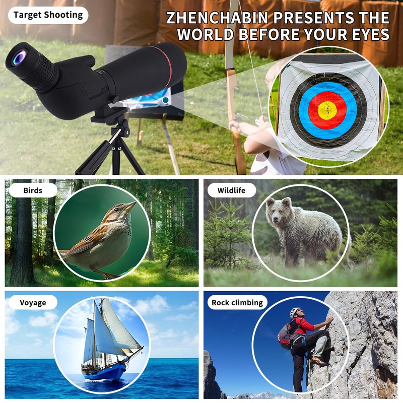 - 【Excellent Service】The package includes 25-75X80 spotting scope, lens caps, tripod, carrying bag, user manual, and cleaning cloth. ZHENCHABIN is committed to providing high-quality products and customer satisfaction. If you have any questions during the usage, please feel free to contact us