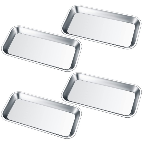 ZHENGYYUU 4 Pcs Small Instrument Tray, Stainless Steel Rectangular Laboratory Supplies Tray for Dental Lab Tool Instrument, Bathroom Organizer, Tattoo Tool Trays