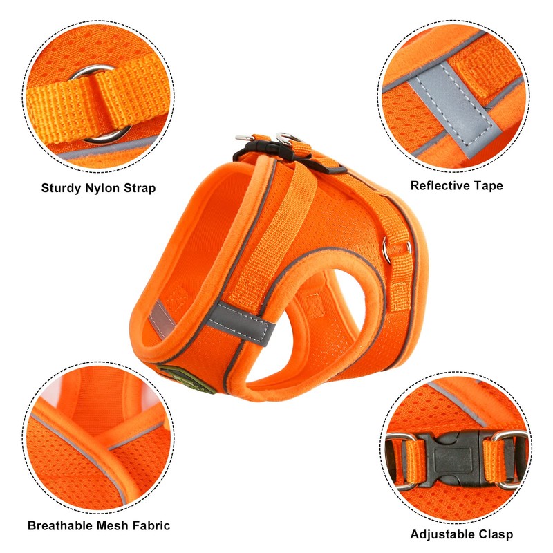 Zhenle Cat Harness, Escape Proof with Cat Lead, Adjustable Reflective Cat Harness Set with Lead, Orange Cat Harness Set Includes Collars, Lead and Chest Harness (XS)