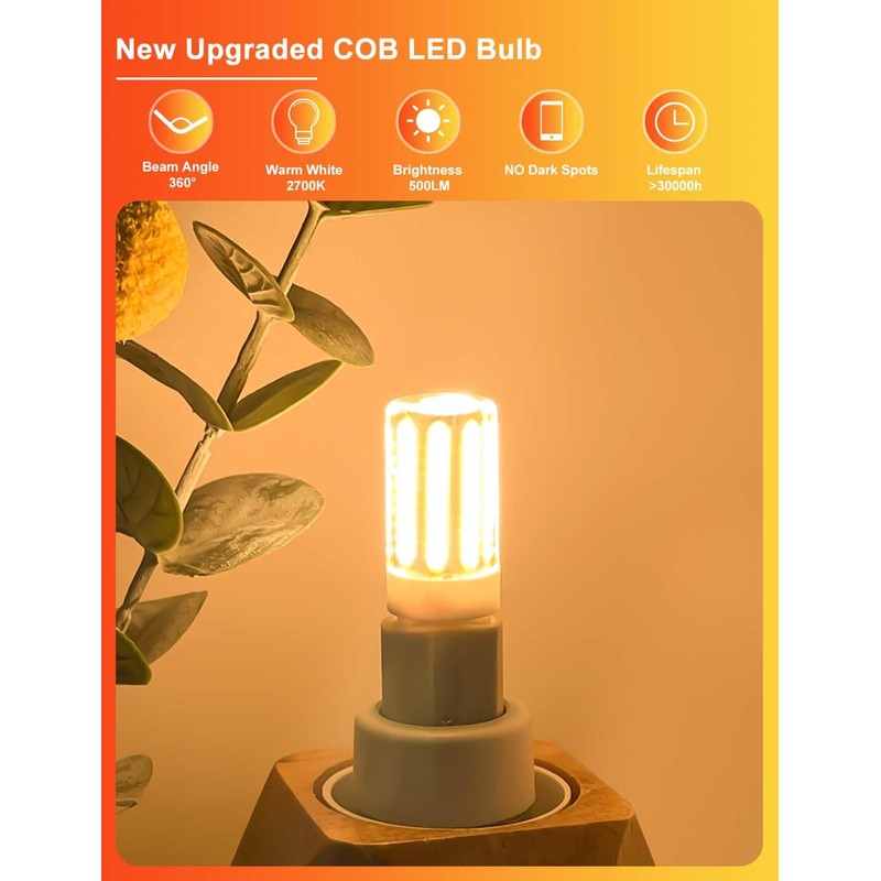 - Upgrade COB LED lamp G9: G9 LED light bulb 500 lm, warm white 2700 K daylight white 360° beam angle with 100 pieces energy-efficient upgrade LED COB chips. Unlike traditional SMD bulbs, our upgrade COB G9 LED lamp has virtually no dark spots, and the densely packed light-emitting units create a brighter, thththththththFree and more uniform light, with a 360 degree beam angle for a wider range of light emission! Translated with DeepL.com (free version)