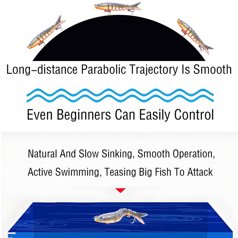 1. The bait adopts an 8-segment multi-joint design, which can slowly sink and move flexibly in the water