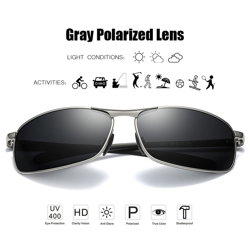 ZHILE Rectangular Polarized Sunglasses Al-Mg Alloy Temple Spring Hinge UV400 (Silver, Grey)
