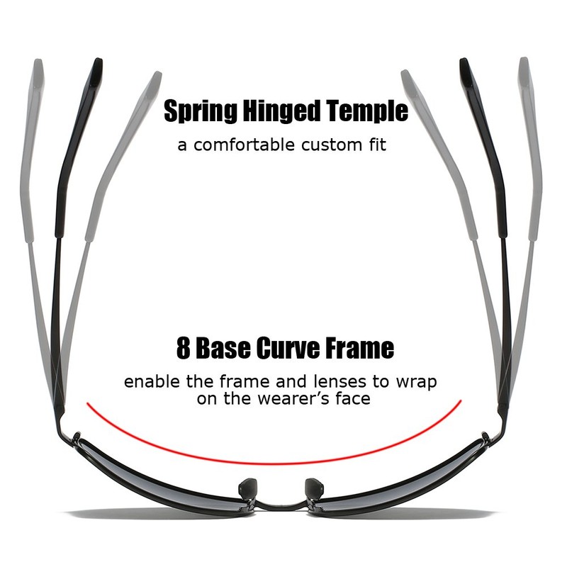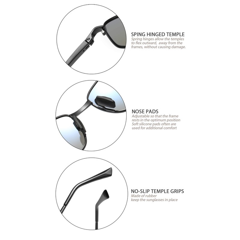 The wrap polarized sunglasses adds a sense of sport classic style with a sleek combination of plated stainless steel and Aluminum-Magnesium alloy temples. The large fit, wrap frames offer generous coverage, with adjustable nose pads for all-day comfort. Polarized lenses eliminate glare, reduce eye fatigue, and block 100% of harmful UV rays. Tinted lens coloring system adds color contrast without distorting natural colors, allowing you to see more clearly. Polarized TAC Lenses are shatterproof, scratch resistant, light weight and durable, making these sunglasses suitable for all outdoor activities.