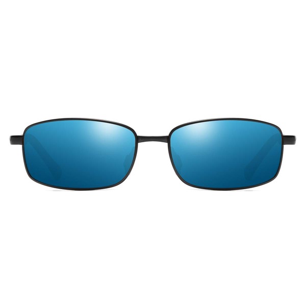 ZHILE Wrap Polarized Sunglasses Rectangular Metal Frame Classic Style Large Size, Black, Medium