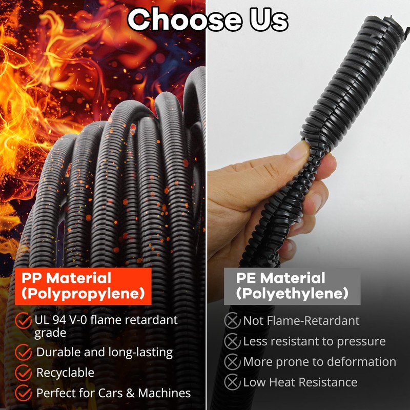 - Easy Installation: With side-cut corrugated wire loom tubing is much easier to use. Great plastic cover for electrical wires and cables.